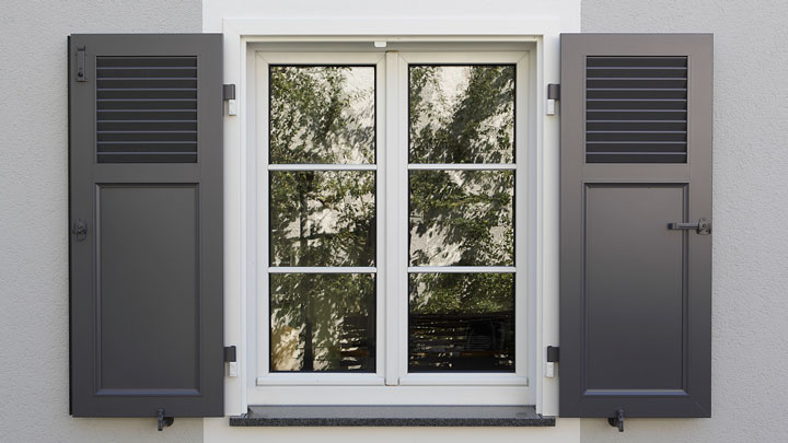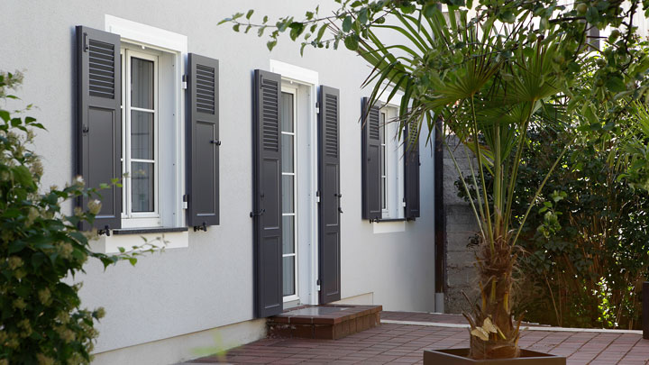 EHRET Klappläden setzen Akzente und Massstäbe, die im Einklang mit der Architektur ein harmonisches und einzigartiges Erscheinungsbild schaffen.