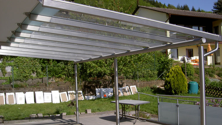 Aluminium ist in seiner Eigenschaft ein hervorragendes Material für die Freiraumüberdachung. Es benötigt wenig Pflege und Wartung. Unser System ist besonders langlebig und witterungsbeständig. Die Kammerplatten aus Polycarbonat mit UV-geschützter Oberfläche behalten auch nach jahrelanger Freibewitterung ihre hohe Lichtdurchlässigkeit und halten auch weiterhin starkem Hagel stand. Verbundsicherheitsglas (VSG) ist ein Flachglas. Es zeichnet sich durch besonders hohe Stabilität und Reißfestigkeit aus.